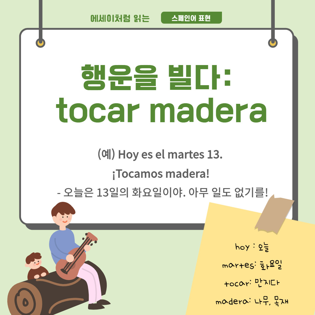한편, 불길한 미신들이 있으면 이런 불길함을 물리치는 무기도 있기 마련이다. 스페인에서는 '나무'이다. 나무를 만지면 나쁜 기운이 물러가거나 미신의 저주에서 풀린다고 믿는다. 어떤 나무이든 특별히 상관없고 꼭 살아있는 나무가 아니라 나무 조각이나 나무로 만들어진 무엇이어도 괜찮다. 그래서 불길한 기분이 들 때면 스페인 사람들은 '우리 나무를 만지자'라고 이야기한다.