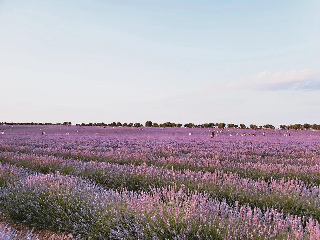 7월의 마드리드에서 꼭 가야 할 곳이 있다. 도심에서 1시간만 가면 만나는 보라색 라벤더 밭이다. 도저히 라벤더 밭이 있을 거라고 믿기지 않는 황토색의 건조한 마드리드 외곽도로를 달려가다 보면 브리우에가 Brihuega라는 표지판과 함께 도로가 2차선으로 좁아지는 지점을 만난다. 그곳에서 조금만 더 가다 보면 기대치 않은 순간, 먼 곳에서 일렁이는 보라색 물결을 마주한다. 상상보다 더 광활하고 더 벅찬 풍경이다. 보라색 사이사이 흰 옷을 입은 사람들이 프레임 속에 자연을 담아보려 저마다의 포즈를 잡는다. 그 어떤 프레임도 눈앞에 아름다움을 다 담지는 못하겠지만.