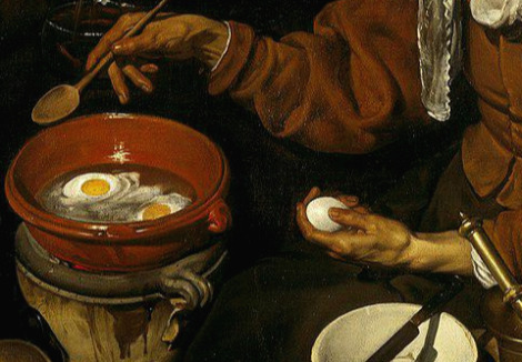 벨라스케스의 보데고네스 그림은 그런 먹고사니즘의 숭고함을 보여준다. 주방, 주점, 식당 등의 일상적인 풍경이나 장면을 그린 이 그림들에는 가끔 인물들이 등장한다. 그들은 그가 스페인 최고의 궁정화가로서 그렸던 왕실의 사람들과는 완전히 다른 외양이다.