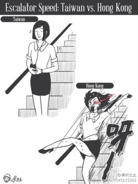 성격 급한 한국 사람에게 딱인 MTR의 에스컬레이터는 한국보다 약 1.5배에서 역에 따라 2배까지 빠르며 전 세계에서 가장 빠른 축에 속한다.