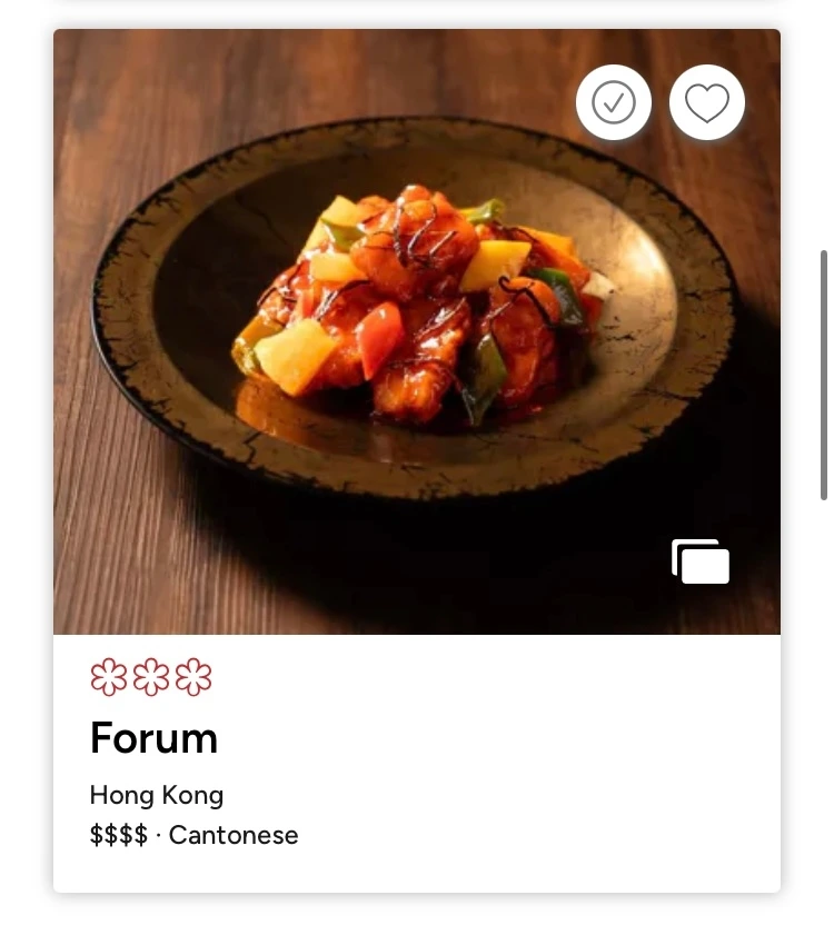 홍콩의 쓰리스타 식당은 총 7곳인데, 서울에는 유일한 쓰리스타 ‘모수’의 폐업으로 2024년 11월 현재 쓰리스타가 단 한 곳도 없다는 점을 감안하면, 과연 ‘홍콩은 미식의 도시'로 불릴만하다는 생각이 든다.