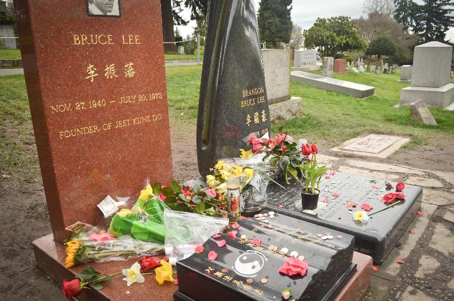 시애틀에 있는 이소룡의 무덤, 옆은 역시 젊은 나이에 유명을 달리한 그의 아들 브랜든리의 무덤