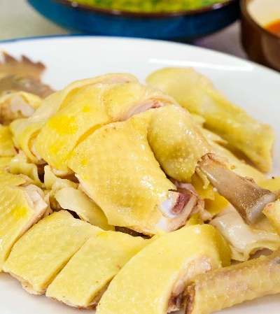 홍콩식 닭백숙으로 노란색이 나서 황금닭이라고도 부른다.