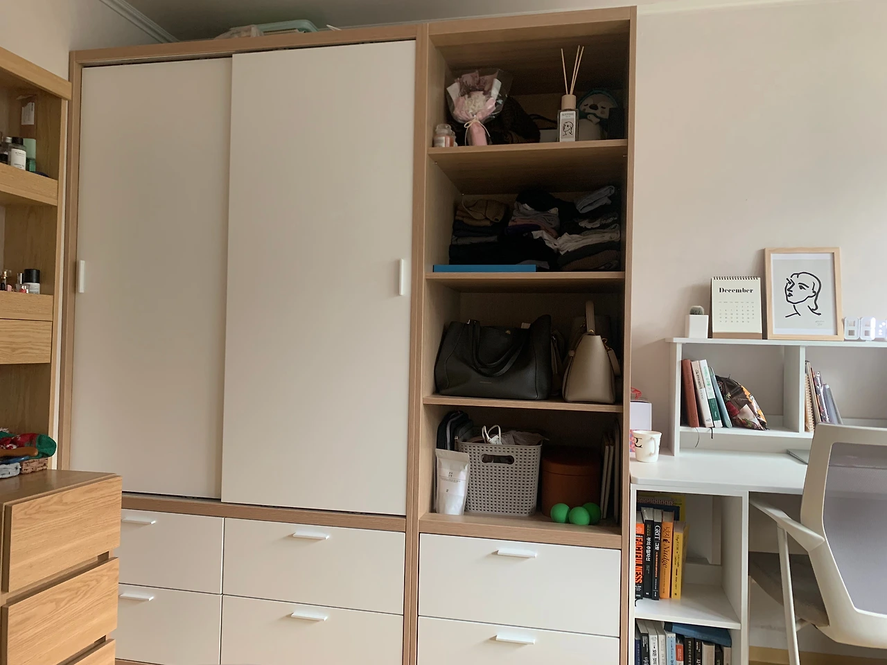 이때 한창 감정적으로도 많이 우울한 상태였다. 나는 환경이 한몫한다고 생각했다. 방 인테리어를 바꾸겠다고 마음먹은 순간, 당장 네이버 부동산에 들어가서 내 방 평수를 살폈다. 가로/세로 길이를 다 측정하고 기존에 있던 가구들의 크기를 다 재보았다. 그리고 '오늘의 집'에 들어가서 내가 원했던 화이트 우드 톤으로 가구를 싹 다 골랐고, 배치까지 아이패드에 그려 넣었다. 여기까지 걸린 시간은 거짓말 안 치고 딱 하루였다. 주문한 모든 것들이 도착하기까지 약 한 달가량이 걸렸지만, 확실히 기분이 전환되고 좋았다.