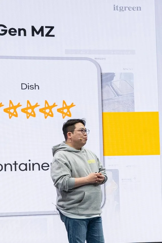 그런가 하면 ‘잇그린’은 우리가 살아갈 더 나은 환경을 위해 노력합니다. 잇그린은 일회용품의 해결책을 다회용기로 생각합니다. 일회용품을 쓰지 않기 위해 다양한 노력을 함에도 90퍼센트는 그대로 소각되기 때문이죠. 하지만 다회용기는 제작, 세척, 관리, 수거까지 귀찮은 과정들이 필요합니다.