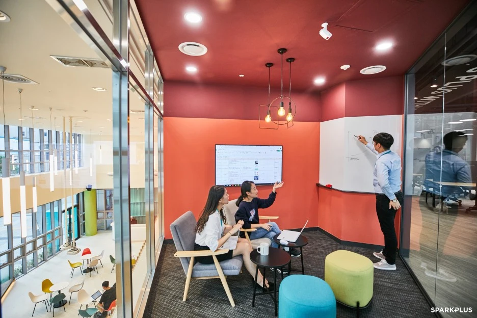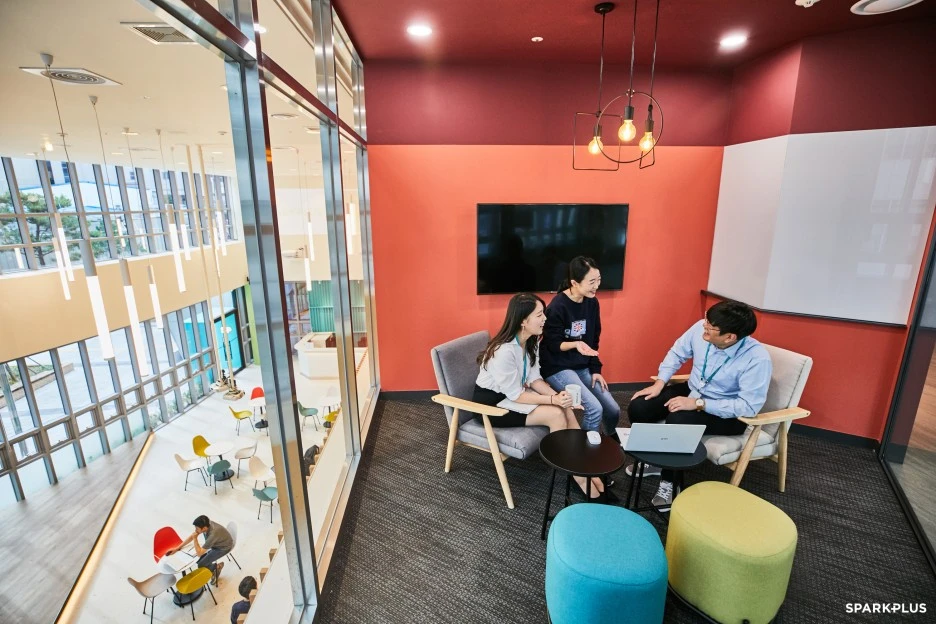 개방형 사무공간으로는 유리 부스, 오픈 테이블, 협업을 위한 회의공간까지!