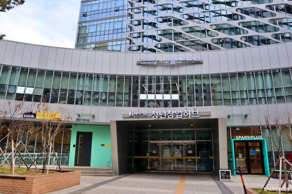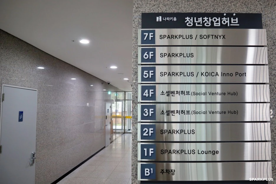 지하1층부터 7층까지 지어진 최신식 건물로, 3개의 기관이 함께 운영중인데요. 스파크플러스가 운영 중인 1,2,6층은 혁신 창업공간으로 사무, 네트워킹 공간을 제공하며, 소셜벤처허브가 운영하는 3,4층은 사회적 문제를 해결하는 소셜 벤처 창업 기업을 육성하는 공간, 한국국제협력단의 이노포트가 5,7층을 청년인재의 취업 및 창업을 지원하는 공간으로 운영되고 있습니다.