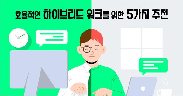 하이브리드 워크 시대가 열렸습니다. 하이브리드 워크는 사무실 근무와 재택근무를 병행하는 유연한 근무 형태로 주목받고 있습니다. 하이브리드 워크 환경에서는 언제 어디서나 업무를 진행할 수 있도록 업무 연속성을 유지하는 일이 중요합니다. 동료와 같은 사무실에서 일하지 않더라도 업무 진행 상황이 투명하게 공유되고 서로 같은 업무 흐름 안에서 소통할 수 있어야 하는데요. 효율적인 하이브리드 워크를 도와주는 서비스와 사내 제도를 소개합니다.