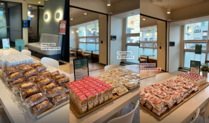 스파크플러스에서 경험해 본 SP문화 중 가장 호응이 좋았던 건 역시 '스플모닝'이었습니다. 스플모닝은 입주사들이 든든한 상태로 하루를 시작할 수 있도록 매주 수요일마다 스파크플러스가 제공하는 아침식사입니다. 스파크플러스는 '당신이 성공에 집중하는 동안 우리는 당신에게 집중합니다'라는 슬로건에 맞게 스플러의 컨디션을 다방면으로 신경 쓰고 있어요.