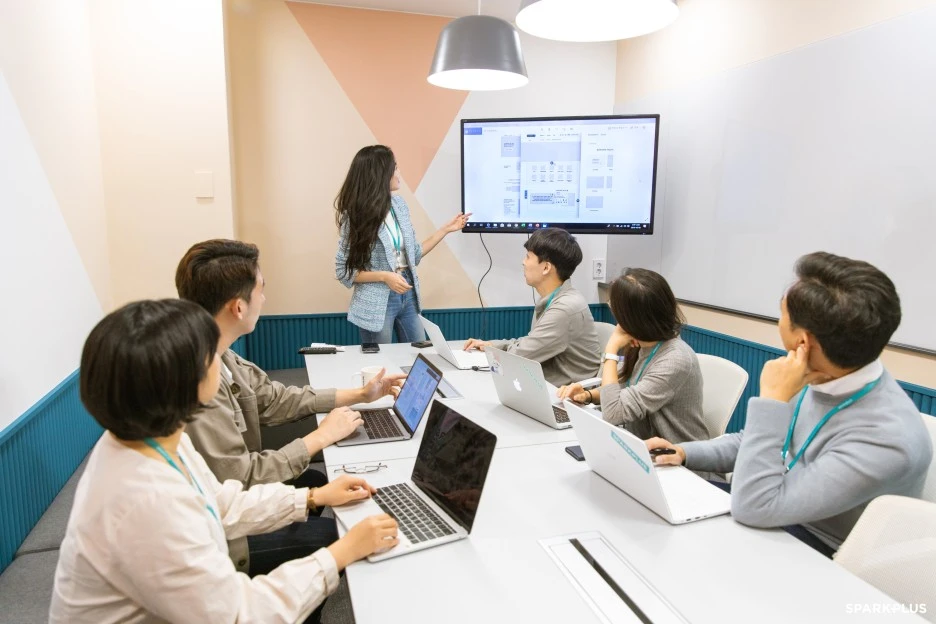 회의실 이용은 편리하게 어플을 통해 실시간으로 예약할 수 있고, 회의실이 여유 있는 편이라서 필요할 때마다 예약해서 사용하고 있습니다. 이용 지점뿐만 아니라 스파크플러스 전 지점의 회의실을 예약할 수 있기 때문에 미팅 장소에 따라 이용하기 편리한 지점의 회의실을 예약 후 사용하고 있습니다.