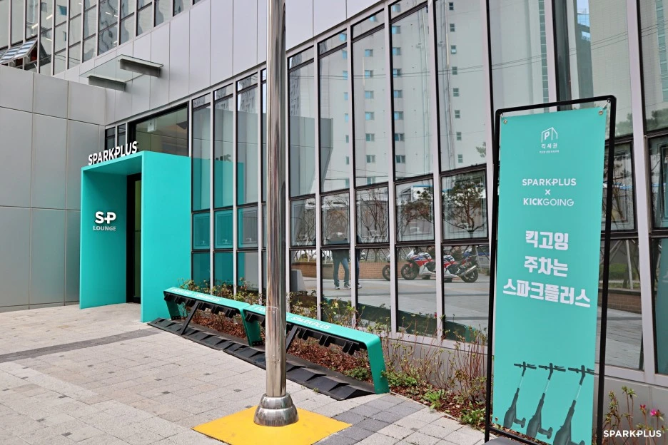 테헤란로 주변 강남, 선릉, 삼성까지 도보나 전동 킥보드를 이용해 10분 이내면 갈 수 있어서 접근성도 좋습니다. 킥고잉을 타려면 어디에 있는지 어플에 접속해서 위치를 찾아서 가야하는데 스파크플러스 선릉3호점 앞에는 킥고잉존이 따로 마련되어 있어서 주차되어 있는 킥고잉 따고 빠르게 이동할 수 있어요.