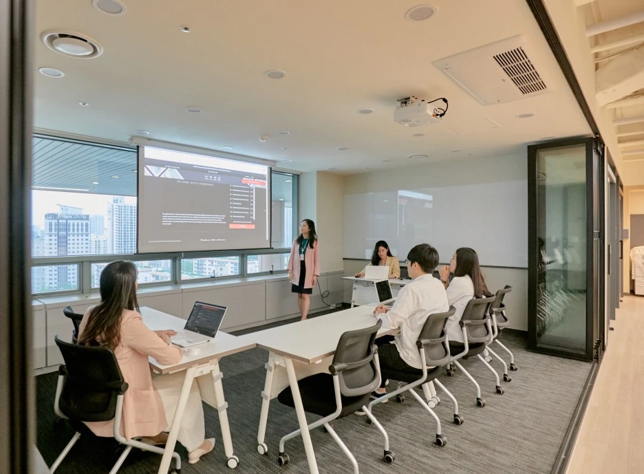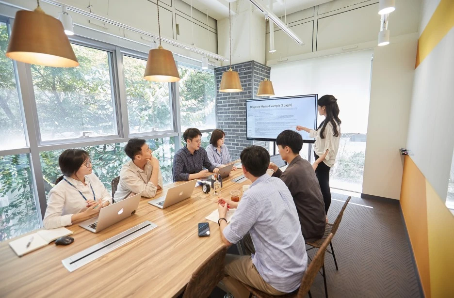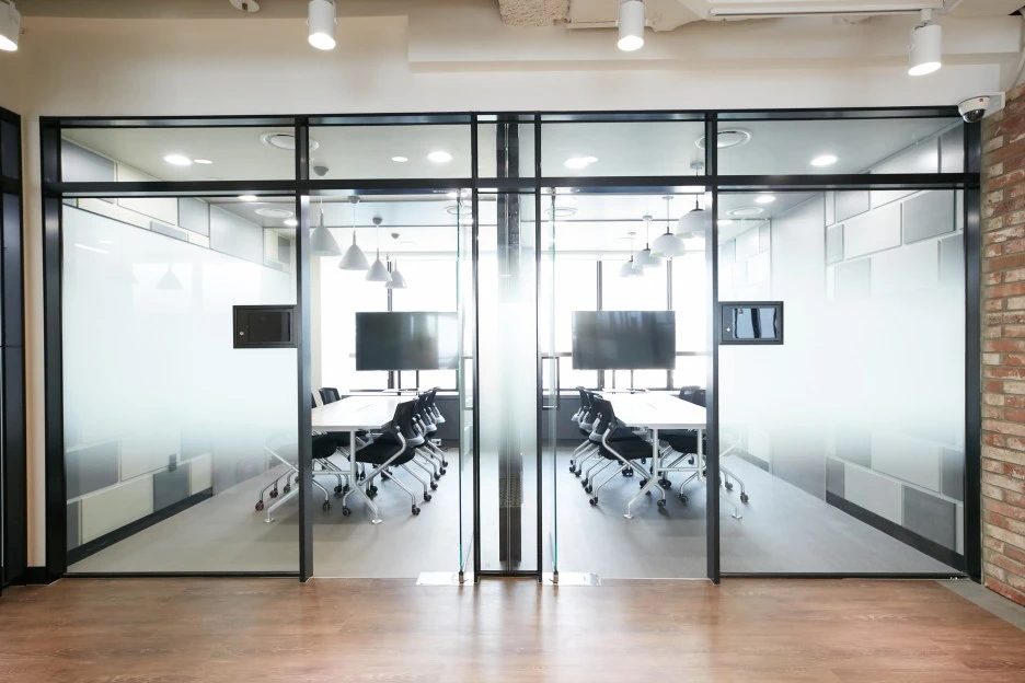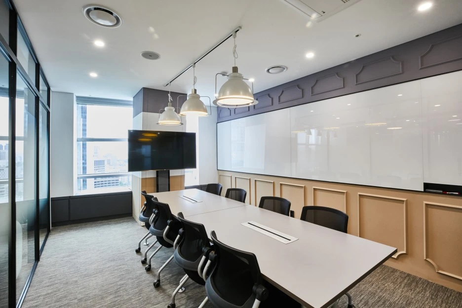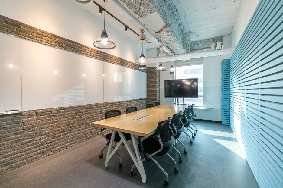 전략 회의, 실무 회의 등 회사의 기밀 사항에 대해서 논의할 때는 열린 공간보다는 닫힌 공간에서 회의를 진행하는 것이 좋습니다. 소음을 최소화하기 위해 흡음 보드가 설치된 회의실, 프라이버시를 위해 유리 시트지를 부착한 회의실 등 넓은 테이블과 모니터가 설치된 회의실을 추천합니다.