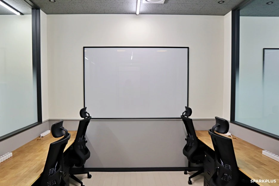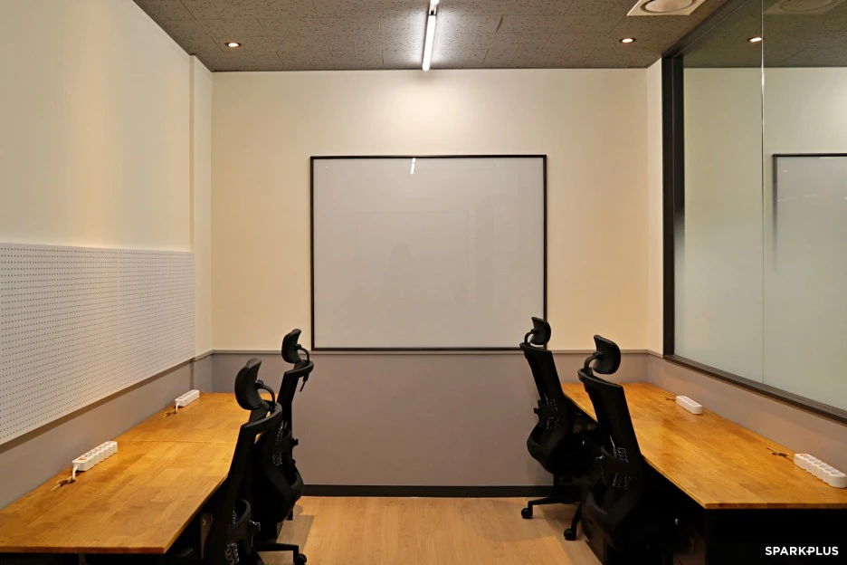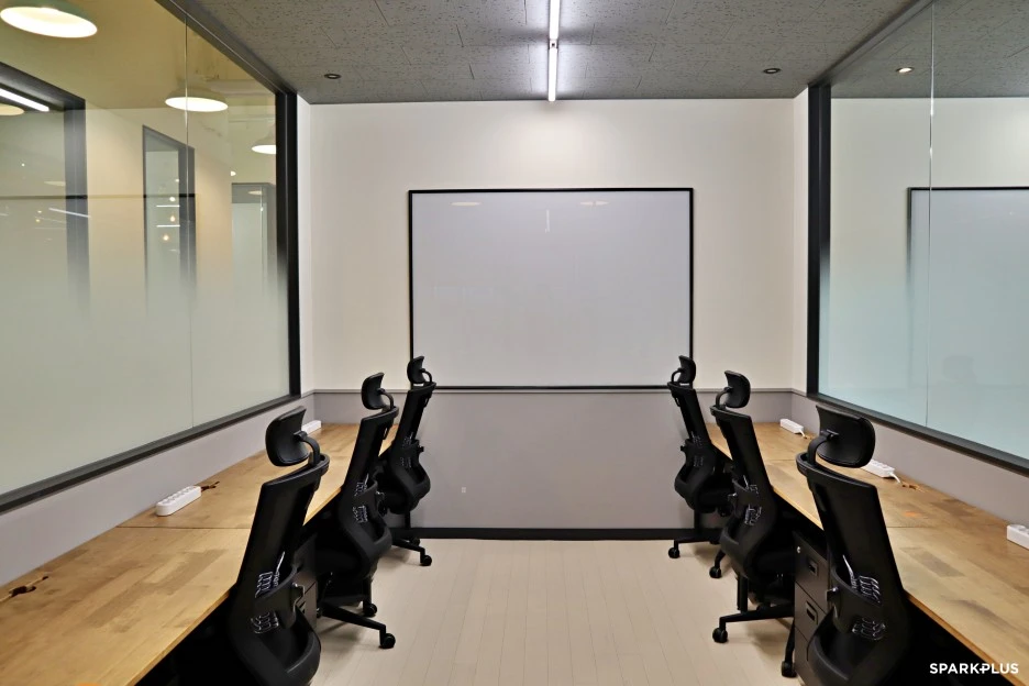 6일실, 10인실로 구성된 회의실은 스파크플러스 앱을 통해서 예약 후 이용할 수 있고, 30분 단위로 예약이 가능하며 최대 2시간까지 예약 가능합니다.