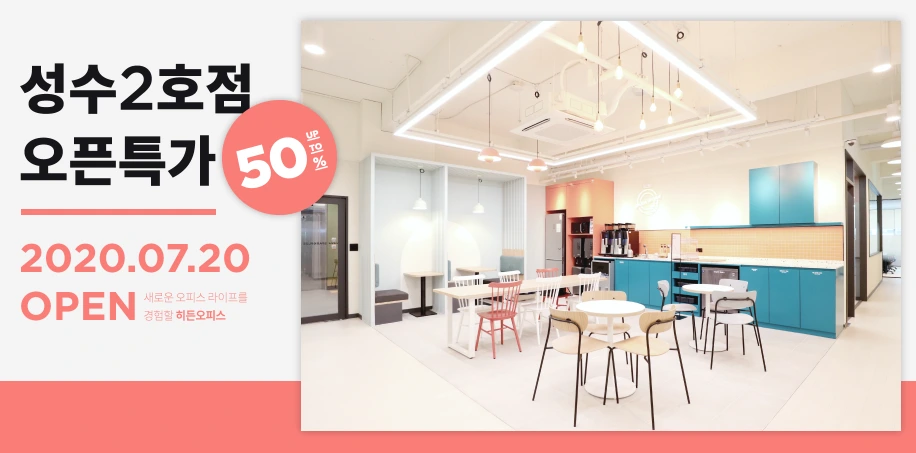 스파크플러스 성수2호점 7월 오픈 기념으로, 최대 50% 할인된 금액으로 입주할 수 있는 프로모션을 진행 중입니다.