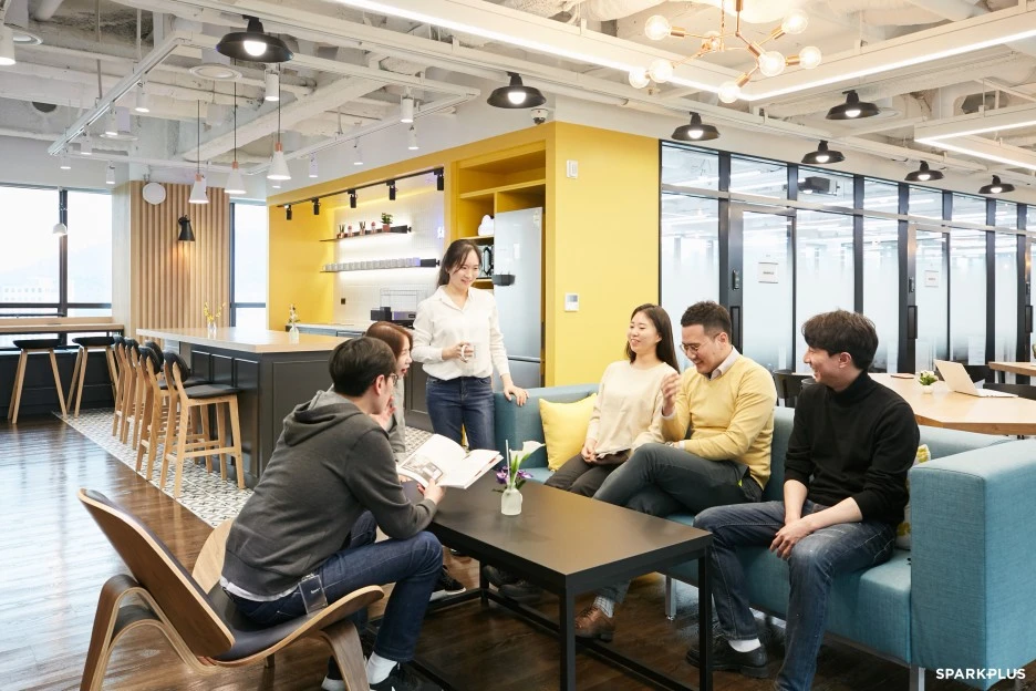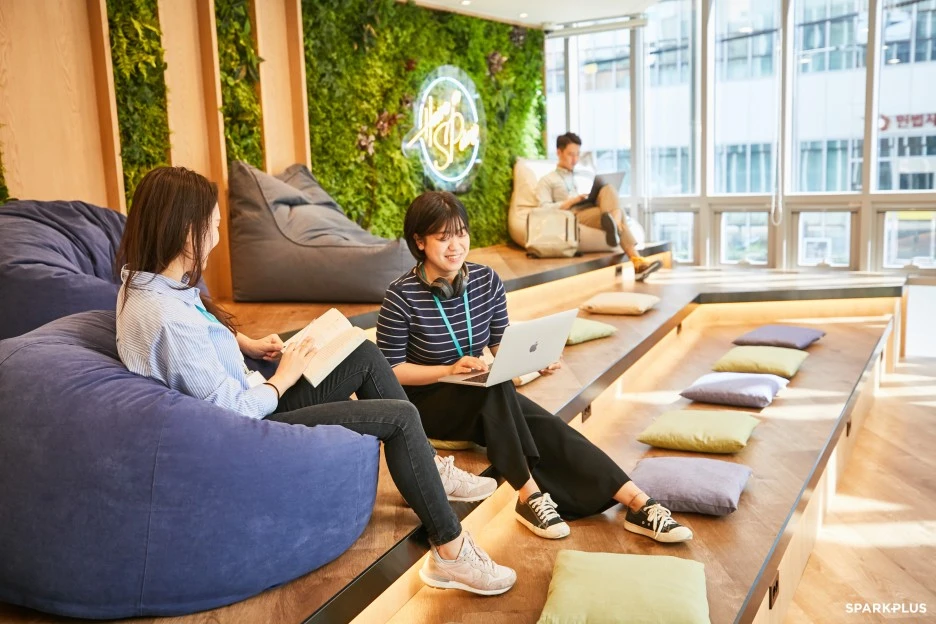 스파크플러스 멤버는 15개 전 지점 라운지를 무료로 사용할 수 있기 때문에 개방된 공간에서 자유롭게 일할 수 있습니다. 물론 커피와 차도 무료로 이용할 수 있습니다. 라운지 공간에 유리부스, 오픈 부스, 편안한 쇼파 등 다양한 분위기 속에서 일할 수 있기 때문에 단골 카페가 15개 생긴 느낌이랄까...?