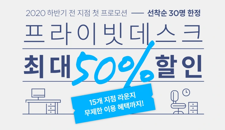 프라이빗데스크 : 1인 지정 좌석 + 전 지점 15개 라운지 무료 이용