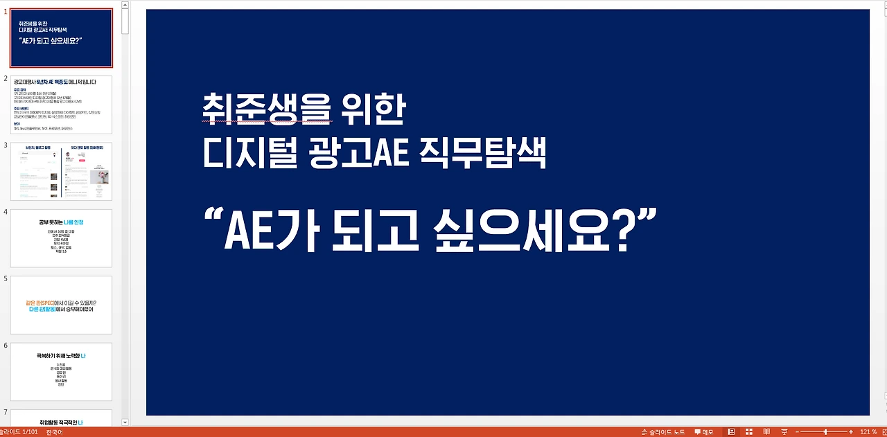 최대한 실제 사례 중심으로 준비하였고, 내가 준비한 과정, 실무와 이상향의 간극, 그리고 실제 어떤 업무를 하는지, 그리고 내 강의에서는 꼭 이력서와 자소서, 면접에 대한 도움을 받아 갔으면 하는 바램으로 준비하였다.