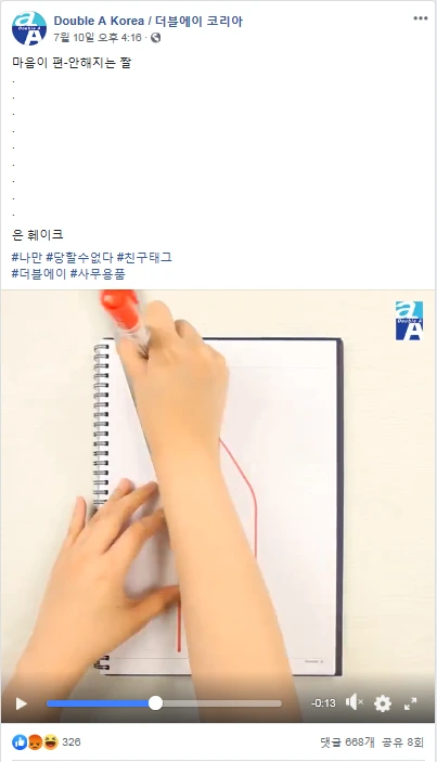 - 선정 이유 : 사무용품을 사용할 때 상황이나, 공감할 수 있는 상황, 패러디 등 컨텐츠를 잘 만들었다고 평가한다. A4용지뿐만 아니라 다른 사무용품들도 판매하는 것을 알 수 있었다.