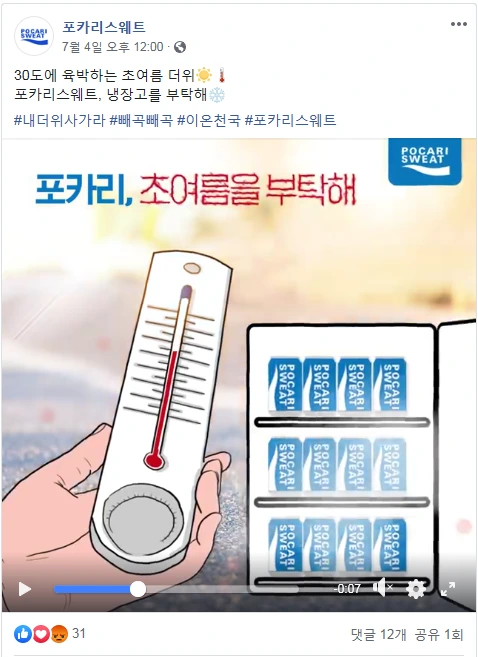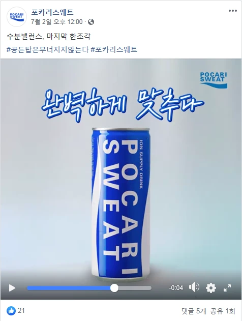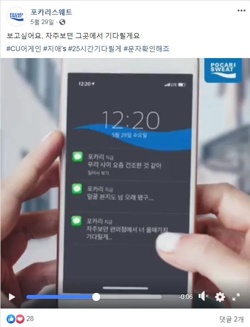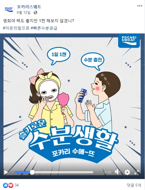 - 선정 이유 : 여러 아이돌 설현, 트와이스 등으로 청량감과 상쾌함을 잘 표현한 컨텐츠도 있으나, 필자가 주목한 것은 '수분'을 다룬 '수분 연구소'라는 컨셉이었다. 주기가 빠르지는 않지만 하나하나 포카리 수분이라는 주제로 제품의 속성과 잘 매칭한 컨텐츠라고 평가하며, 브랜드의 좋은 컨텐츠를 생산한다고 생각되는 페이지 중 하나다.