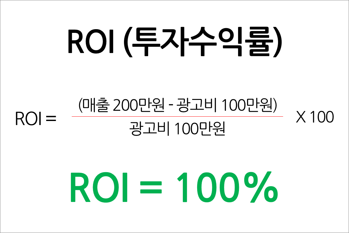 EX 1) ROI = 상품 서비스를 판매해서 얻은 수익 / 광고비 X 100