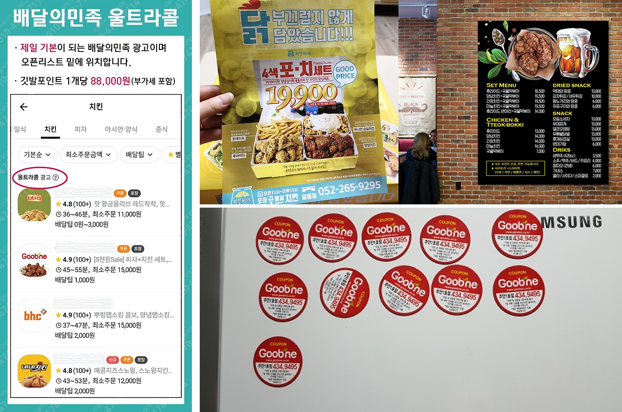 A : 전단지를 뿌리거나, 배달의민족 광고를 하거나, 쿠폰을 지급하거나, 메뉴판을 잘 만들거나... 아니면 잘생긴, 예쁜 알바생을 뽑거나