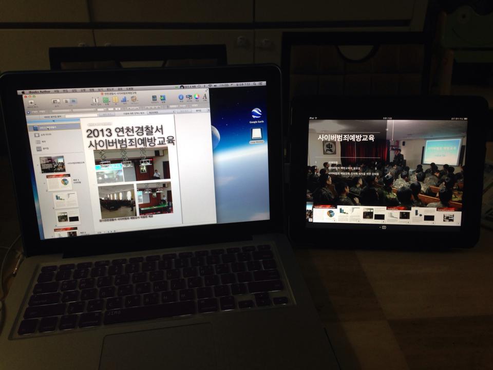 틈나는 대로 집과 사무실에서 키노트 프로그램으로 도입부터 결론까지 제가 수집한 자료들로 사이버범죄 예방교육 강의안을 만들고 강의안 중간중간에 들어갈 동영상 파일은 모션 5(motion5)와 아이무비(imovie) 프로그램으로 편집해 삽입하고 아이폰과 맥북 그리고 아이맥을 동기화시켜 틈나는 대로 시나리오를 수정하고 시간과 장소에 관계없이 편집하고 만들었습니다.