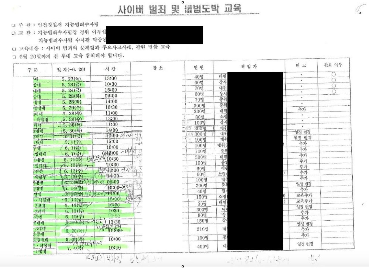 혼자서 사건 조사와 틈나는 대로 예방교육을 하는 상황에서 인터넷 도박 사건은 도저히 엄두도 못 낼 규모의 사건이라 사실 믿기지가 않았습니다.