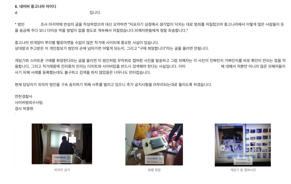 현장에는 다행히 범죄자 외에 다른 사람은 없었고 체포하는 순간에도 범죄자는 중고나라와 번개장터에 글을 올리면서 다른 피해자들로부터 돈을 가로채고 있었습니다.