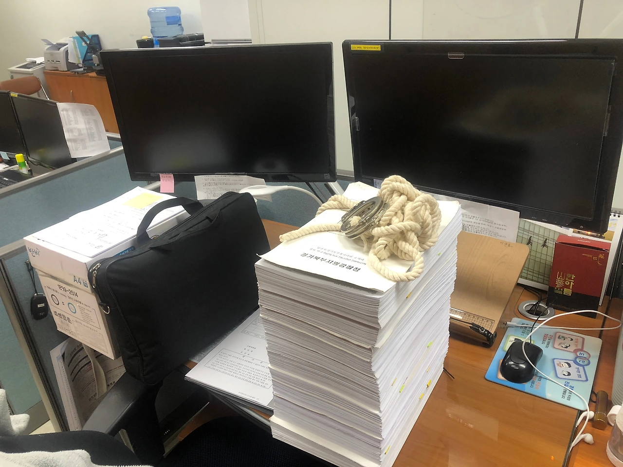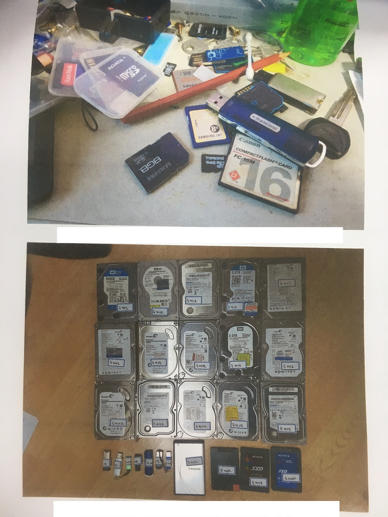 (좌측)체포영장 피의자로부터 압수한 증거물(총 20TB)과 1년간 수사기록(우측)