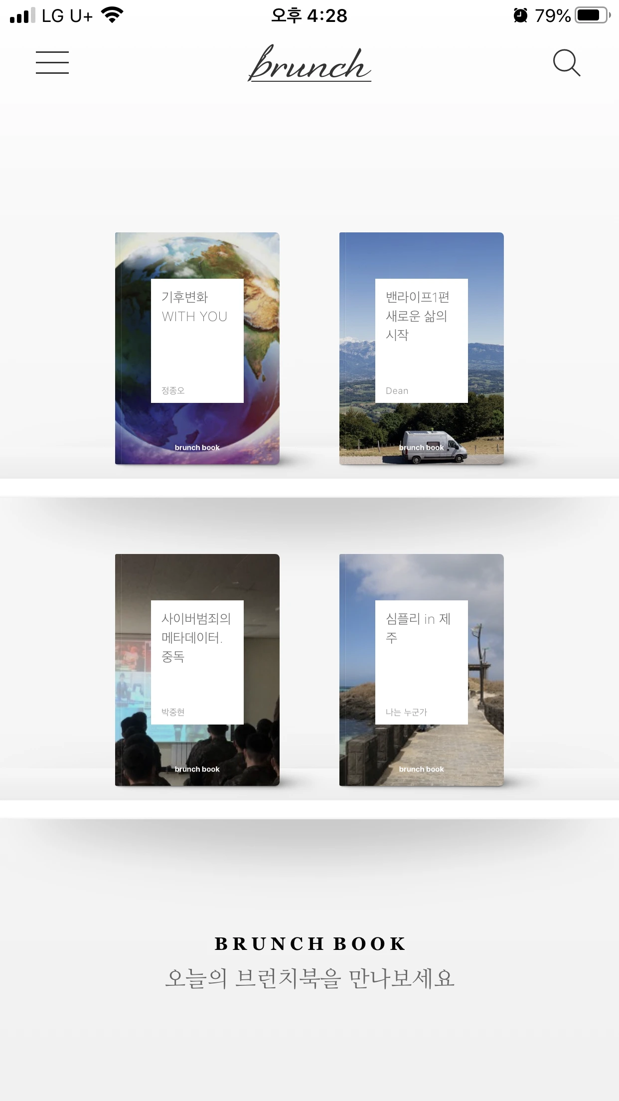 다음 브런치에 노출된 경찰서에서의 마지막 사이버범죄 예방교육(좌측), 글 당일날 순간 조회수 3만 회를 돌파한 검거한 중신은 이번에도 2대였습니다(중간), 브런치 북에도 소개된 사이버범죄의 메타데이터. 중독 편(우측)