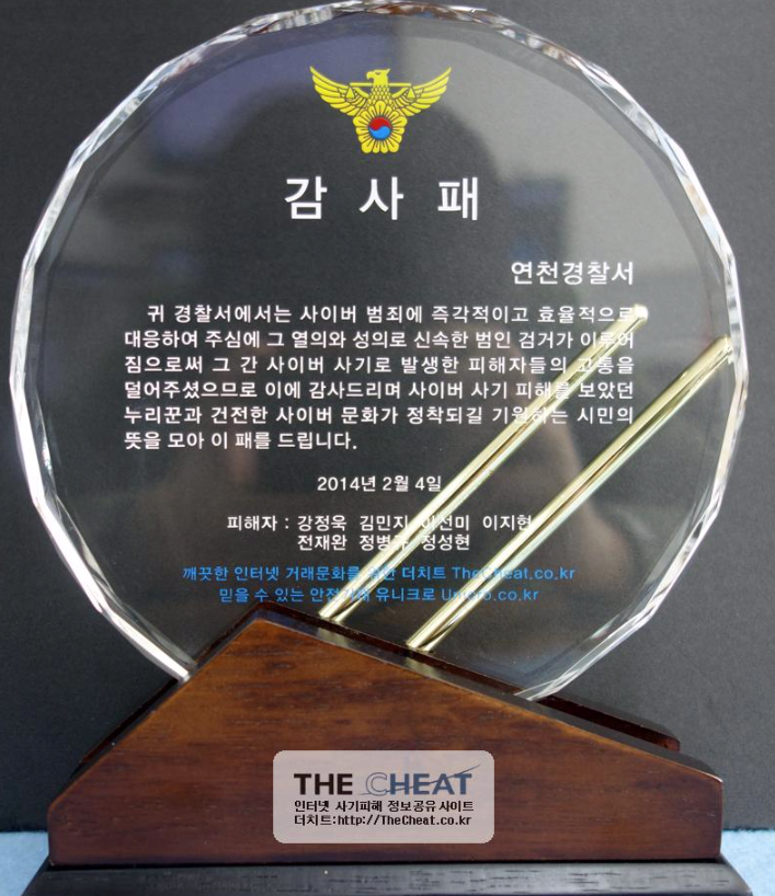 둘 다 고생한 저에게 주는 의미 있는 보상이긴 했지만 ‘더치트’의 감사패는 저에게 더욱 특별하게 다가왔습니다.