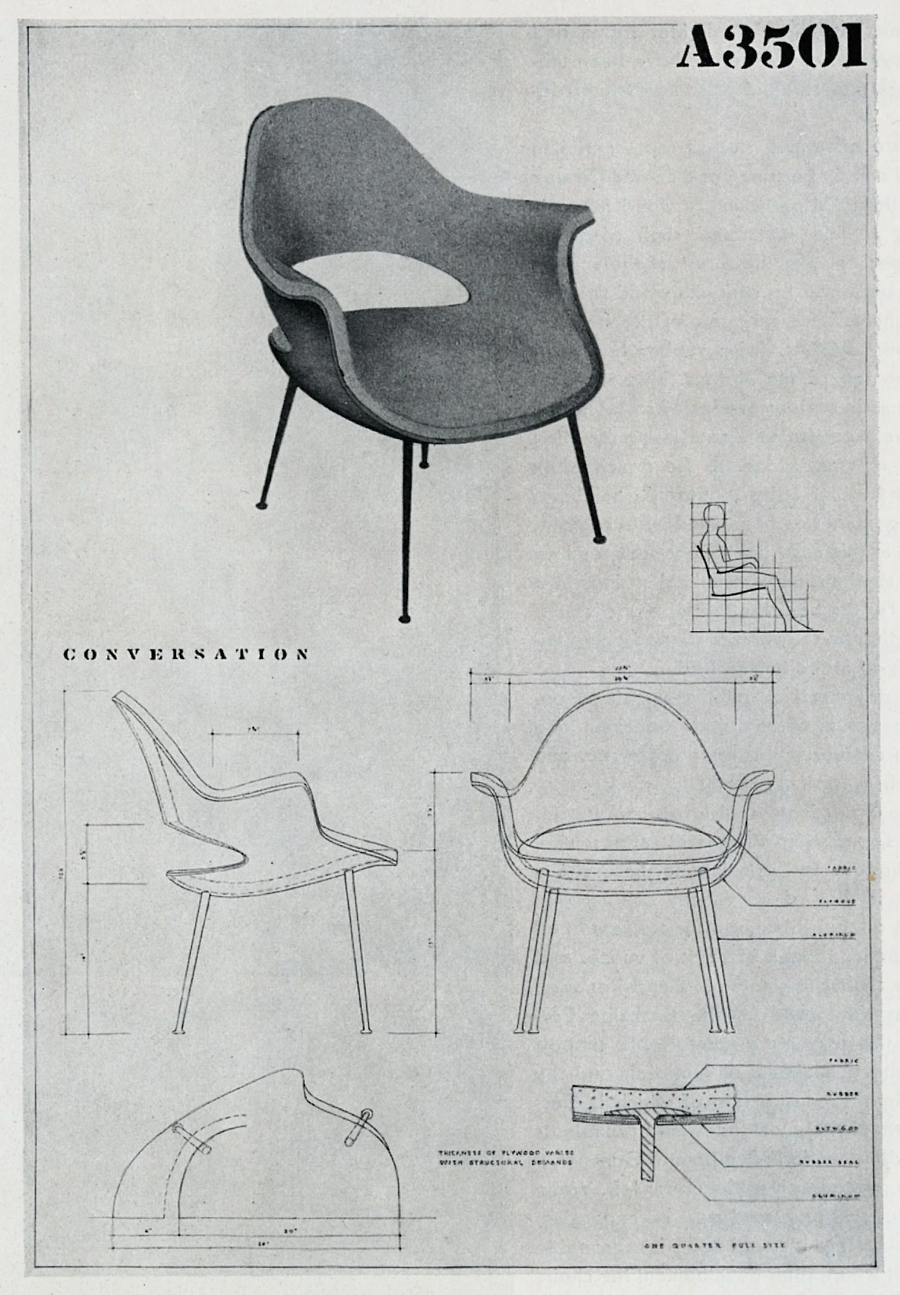 1940년 '인간 친화적 가구 공모전(Organic Design in Home Furnishings)'에 찰스 임스는 그의 단짝인 에어로 사리넨과 함께 참가하여 등받이와 시트 그리고 팔걸이를 하나의 합판으로 만든 '오가닉 체어(Organic Chair)'로 1등을 거머쥐게 된다.
