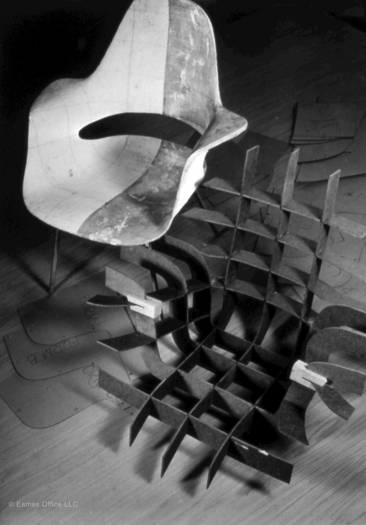 이후 임스부부는 계속해서 3차원 합판 성형에 대하여 연구하였고, 제2차 세계대전으로 부상당한 군인들을 위한 부목에 합판 성형기술을 개발, 적용할 수 있었다.