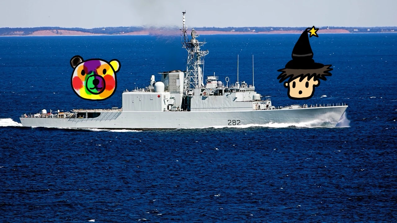 바로 아래에는 멋진 군함이 바다를 가로질러 가고 있었다.