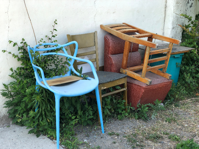 거장들의 의자를 조합하여 소재와 색상을 통해 가볍게 풀어냈다.