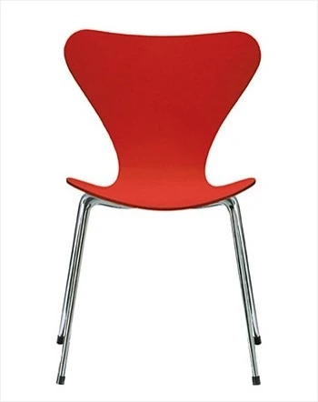 왼쪽부터 아르네 야콥센의 시리즈 세븐, 에어로 사리넨의 튤립 체어, 찰스 임스의 DSR 체어이다.