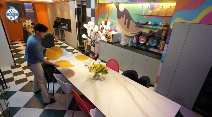 특히 주방과 거실의 강렬한 색감 속에서도