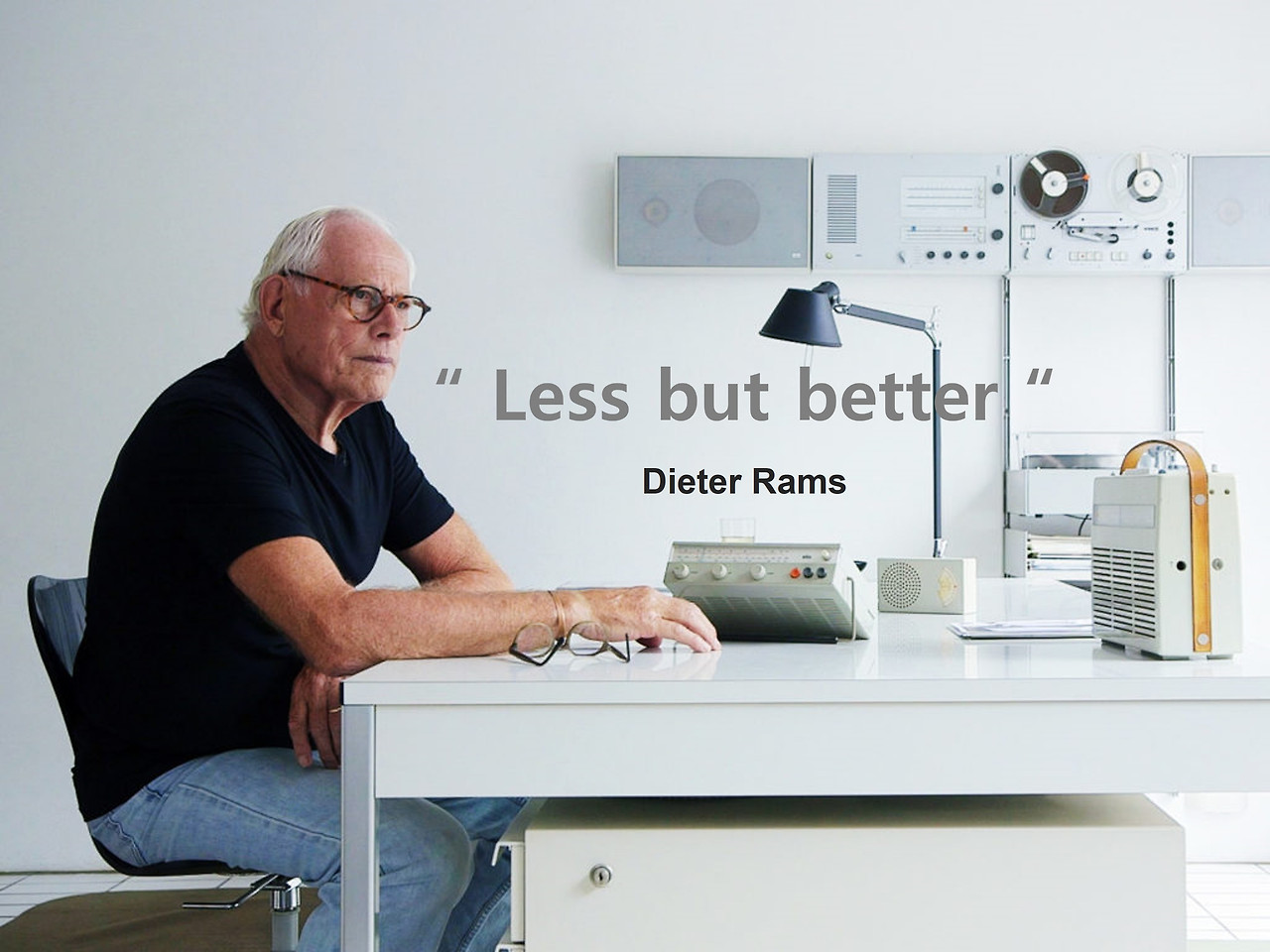 독일 브라운사의 대표 디자이너였던 디터람스는 '최소한의 그러나 더 나은'라며 좋은 디자인에 대한 그의 생각을 펼칩니다.