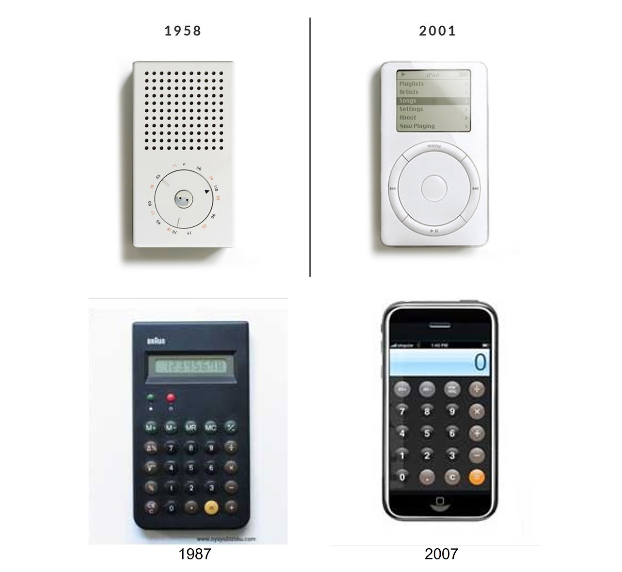 애플의 전 디자인 디렉터였던 조너선 아이브는 그를 존경하였으며, 아이팟, 아이폰 안의 계산기 앱 등을 오마주 했다는 이야기는 유명합니다.