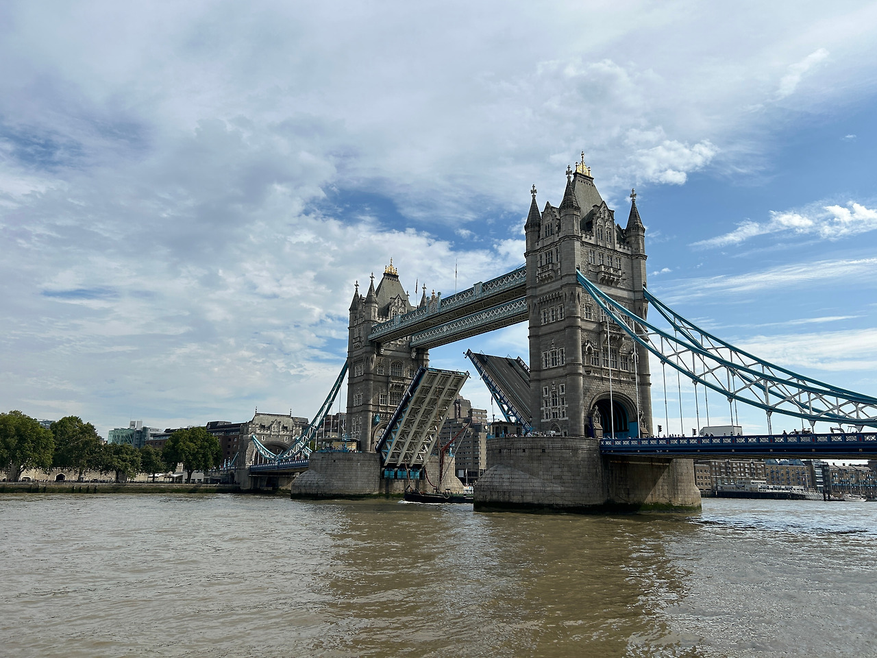 템즈강은 바다로 이어져 큰 배가 들어와야 하는 경우가 있기에 다리가 중앙이 갈라져 위로 올라가는 도개교로 만들어졌답니다.