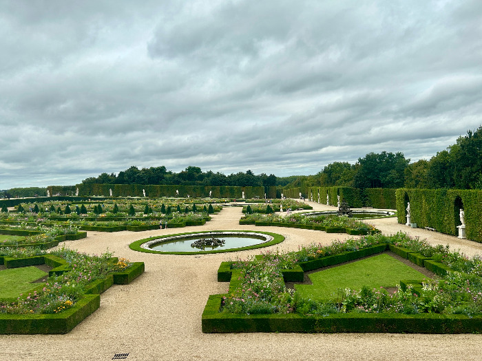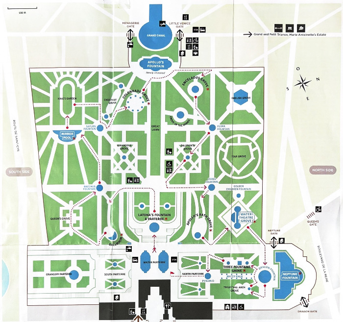 정원은 가운데 라톤 분수에서 아폴론 분수와 그랑 카날로 이어지는 기다란 축선을 기준으로 좌우대칭으로 계획되었습니다.