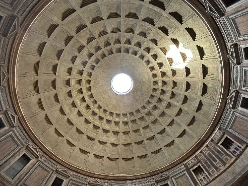 판테온은 신전이었기에 제사를 지내기 위해 불을 피웠을 때는 압력으로 인해 비가 안으로 들어오지 않았다고 합니다. 그러나 불을 피우지 않을 때를 대비하여 빗물이 빠질 수 있도록 배수구도 두었습니다.