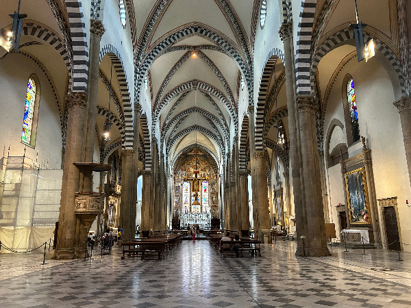 성당 내부의 줄무늬 아치 장식이 그대로 연결됩니다.