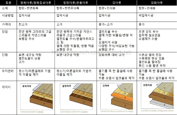 또한 열전도율이 높아 ‘온돌마루’라고 불리는데요. 아마도 우리나라에서는 합판은 저가라는 인식 때문인지 온돌마루로 더 알려져 있습니다.