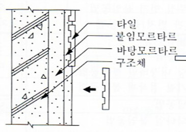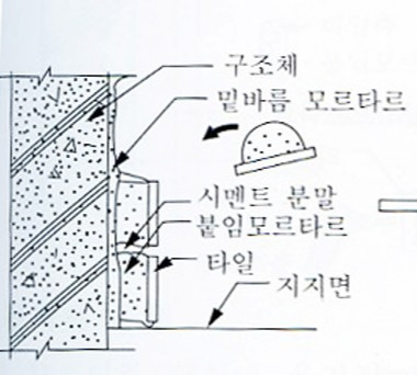 압착공법이란, 바탕에 붙임용 모르타르를 먼저 바르고 그 위에 타일을 눌러 붙이는 공법입니다.