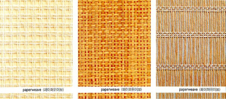: 한지를 물감으로 물들여 꼬아 만든 실(지사)을 여러 가지 형태로 직조하여 만든 면을 종이에 붙여 만든 벽지