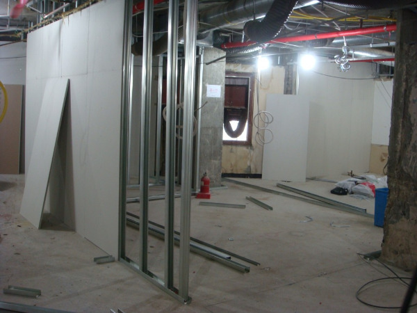 가벽을 세울 때 목재로 구조틀을 만들기도 하지만, 상업공간에서는 금속틀을 주로 사용합니다.