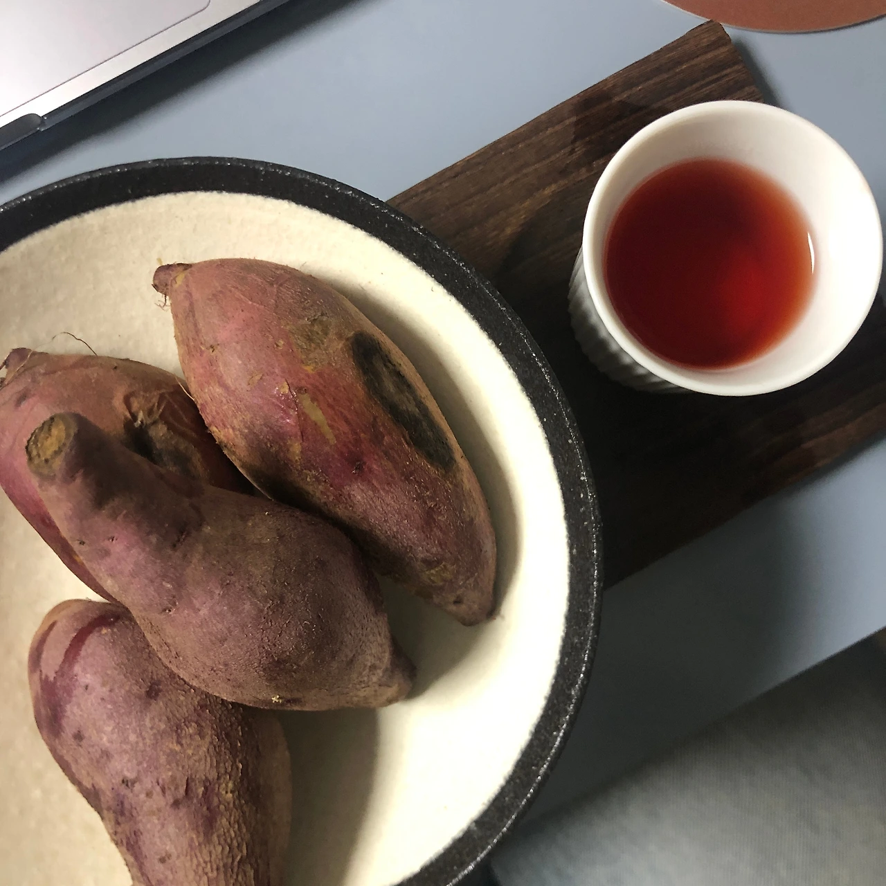 아침이면 한 입 크기 고구마 몇 알을 집어 냄비에 담고 야채솔로 솔솔 씻는다. 씻은 물은 흙이 마른 화분이 있다면 나눠주고, 냄비에는 새로운 물을 살짝 담아 20분 정도 끓인다. 고구마를 삶는 동안 고구마 향은 슬금슬금 모양 없이 다가오는데, 냄비에 모든 물이 사라지고 고구마 껍질이 바스락 익을 때면 장작불에 굽듯한 향이 진하게 난다. 고구마도 맛있지만 고구마향으로 집 안이 포실포실해지는 기분은 늘 좋다. 그런 고구마를 겨울 길이만큼 너끈히 먹고 나누게 홍동 '논밭상점'에서 10kg 한 박스 주문했다.