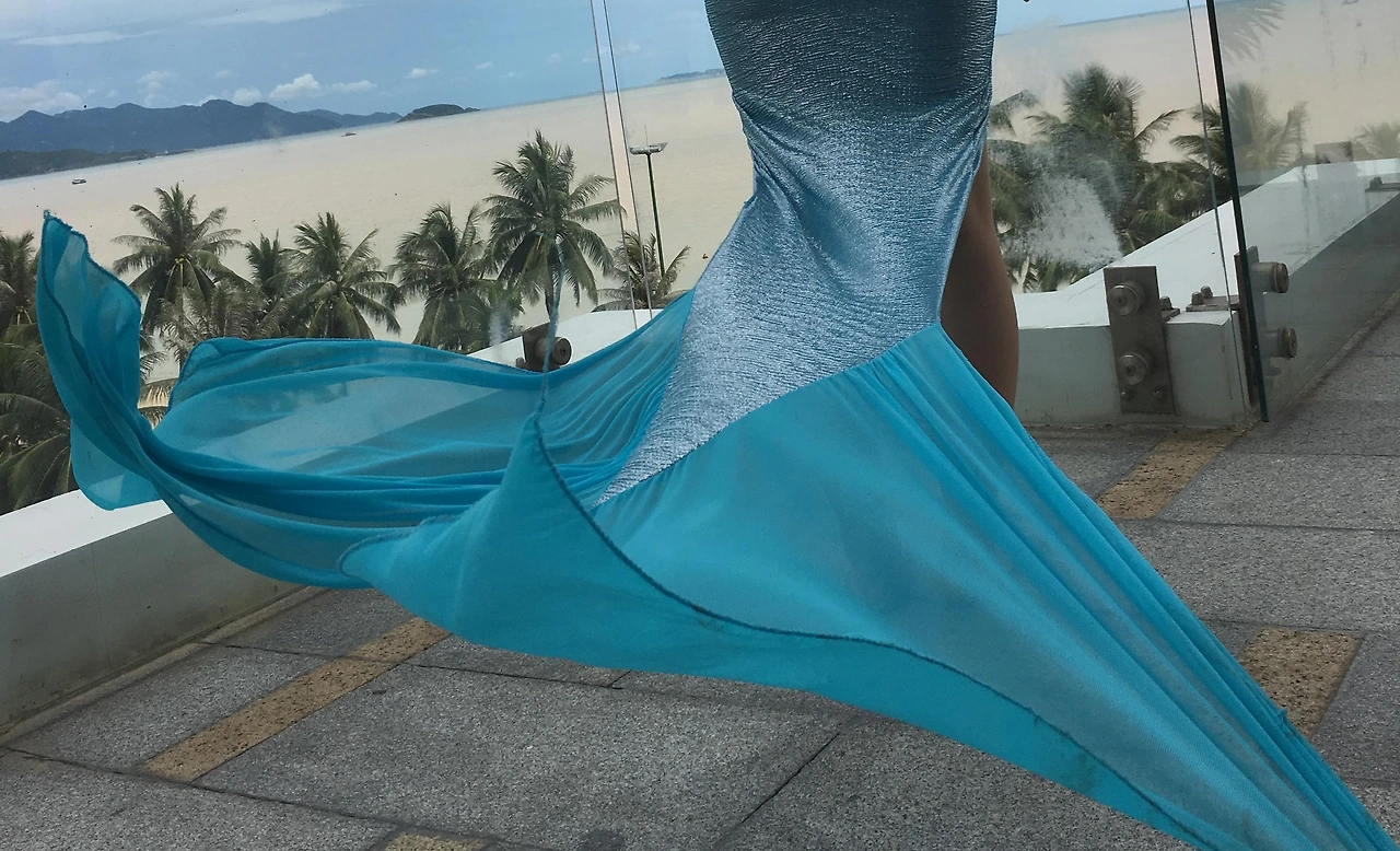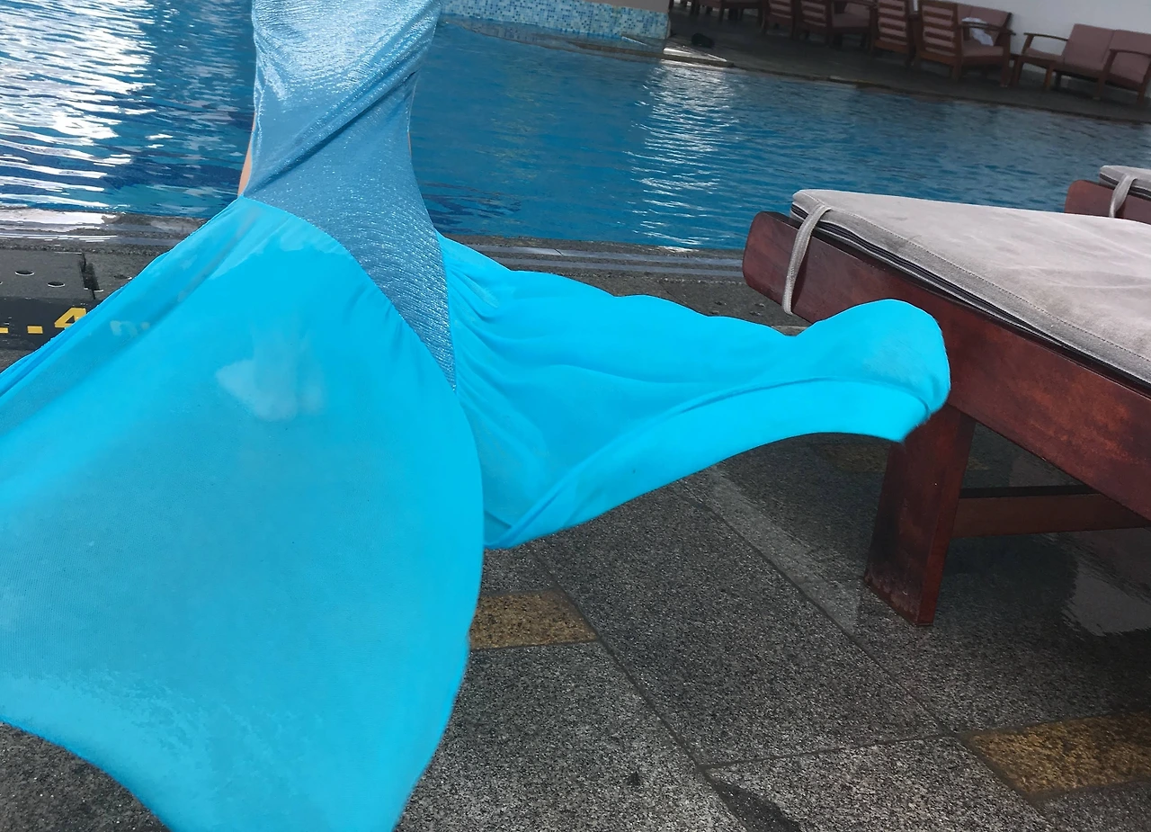 '살면서 언제 인어옷을 입고 사진을 찍어 보겠어! 이것도 다 재미있는 경험이지!' 하며 cher를 따라 도착한 곳은 시내의 한 고급 호텔. cher는 마치 이곳에 묵고 있는 투숙객인 듯 자연스럽고 당당하게 호텔의 고층에 위치한 바다가 내려다 보이는 수영장으로 들어갔다.