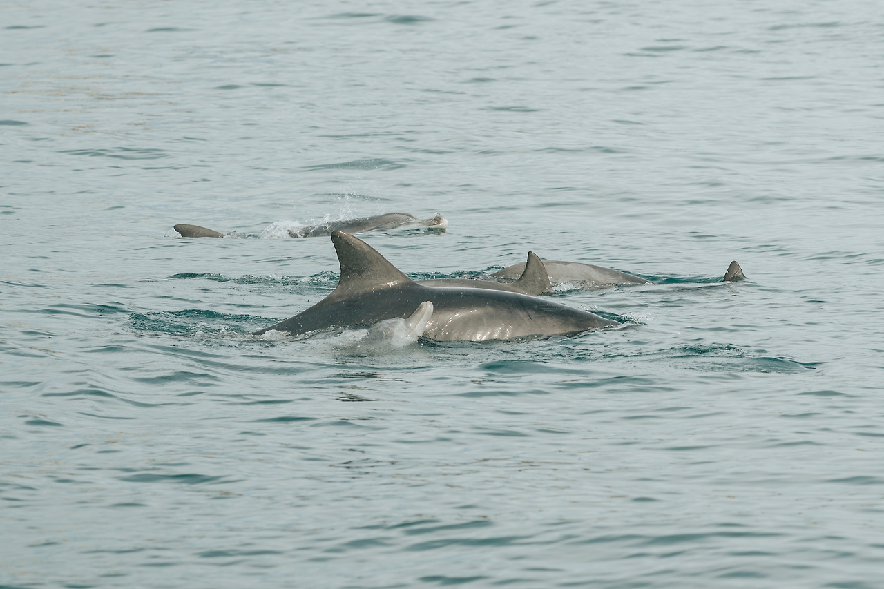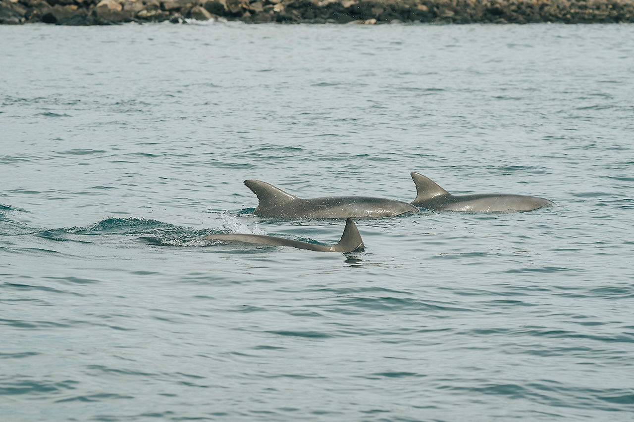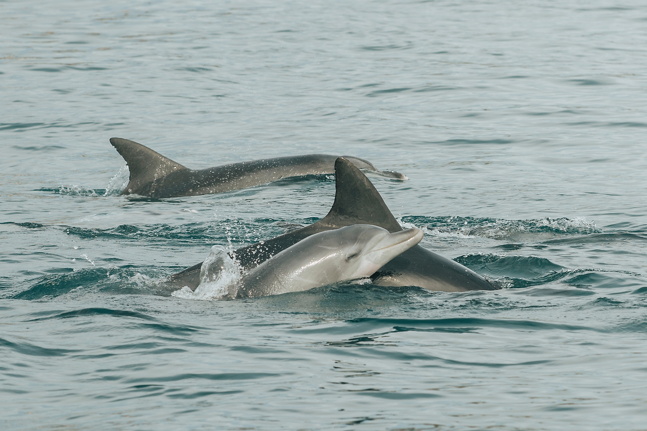 실제로 마주한 돌고래들은 생각보다 컸으며, 수족관 안에선 볼 수 없었던 우아한 움직임으로 배 주위를 헤엄치기 시작했다. 등이 수면 위로 나올 때면 깊은 숨을 몰아쉬며 물줄기를 뿜어댔고, 사람을 보려는 듯이 고개를 빼꼼하고 내밀어 눈을 마주치기도 했다. 사람의 시선을 의식한 듯이 배의 아래를 쉴 새 없이 왔다 갔다 했고, 손을 뻗으면 닿을 듯 지근거리에 있는 돌고래의 움직임에 혼을 빼앗길 지경이었다. 쉴 새 없이 카메라의 셔터를 눌러댔지만 미천한 실력으로 돌고래의 움직임을 따라가기란 역부족이었다.